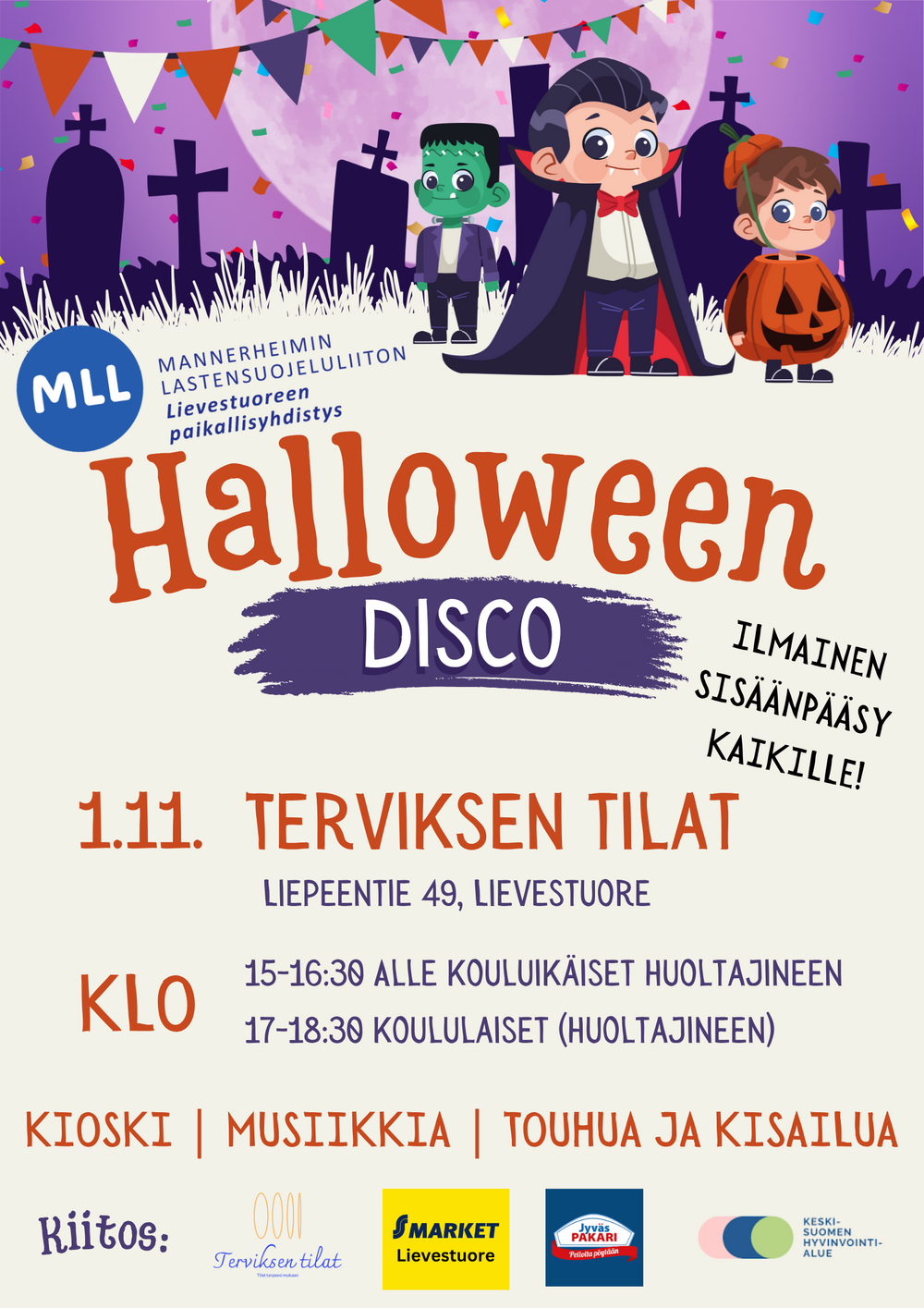 👻🎃 Halloween disco tulee jälleen! 🎃👻 Lauantai 1.11. Terviksen tilojen liikuntasalin täyttää iloisen kaamea juhlijajoukko, kun MLL Lievestuoreen perinteinen Halloween disco pärähtää käyntiin. ⏰ Klo…